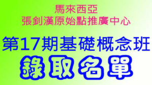 馬来西亞張釗漢原始點推廣中心原始點醫學基礎班(第 17 期)-錄取名單公告