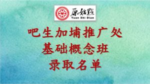 11th Yuan Shi Dian Basic Theory & Hands-On Technique Class (English) (Participants List Announcement)